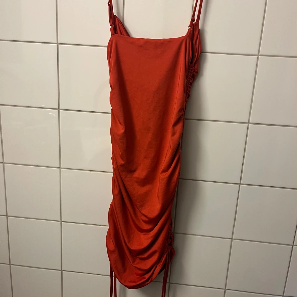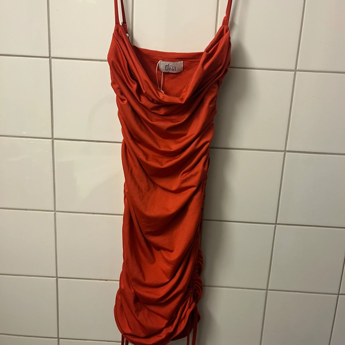 Säljer en snygg röd kortklänning från oh Polly med tunna axelband och draperad framsida. Klänningen har justerbara snören i sidorna. Har används 1 gång💕💕