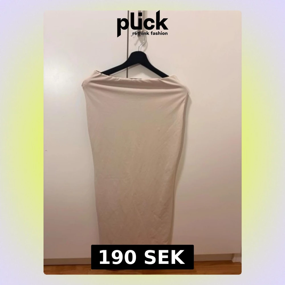 Säljer en enkel och stilren beige långkjol i mjukt och stretchigt material. Kjolen har en rak passform och är perfekt för dig som gillar minimalistisk stil. Inga synliga detaljer eller mönster, bara clean och snygg.
