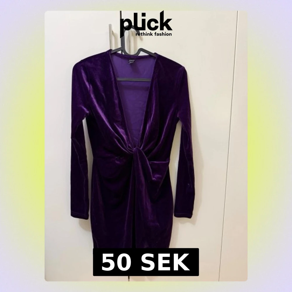 Snygg lila sammetsklänning med lång ärm och djup v-ringning. Klänningen har ett knyt framtill som ger en cool twist och markerar midjan. Kort modell som passar perfekt till säsongens alla tillfällen. Perfekt för dig som vill sticka ut!