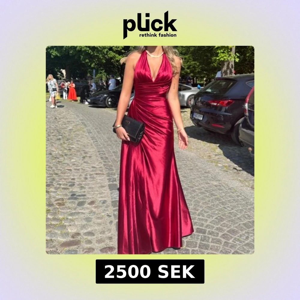 Klänningen har en hög slits och ett vackert fall som ger en dramatisk och lyxig effekt. Den har en öppen rygg och sitter superfint på kroppen – jag kände mig verkligen som en prinsessa i den! ✨ Jag fick otroligt många komplimanger under kvällen, och den var verkligen en showstopper. Storleken passar dig som har XS/S ⭐️ Det finns lite smuts längst ner på klänningen eftersom jag gick en del i den, men det går troligen bort vid kemtvätt.