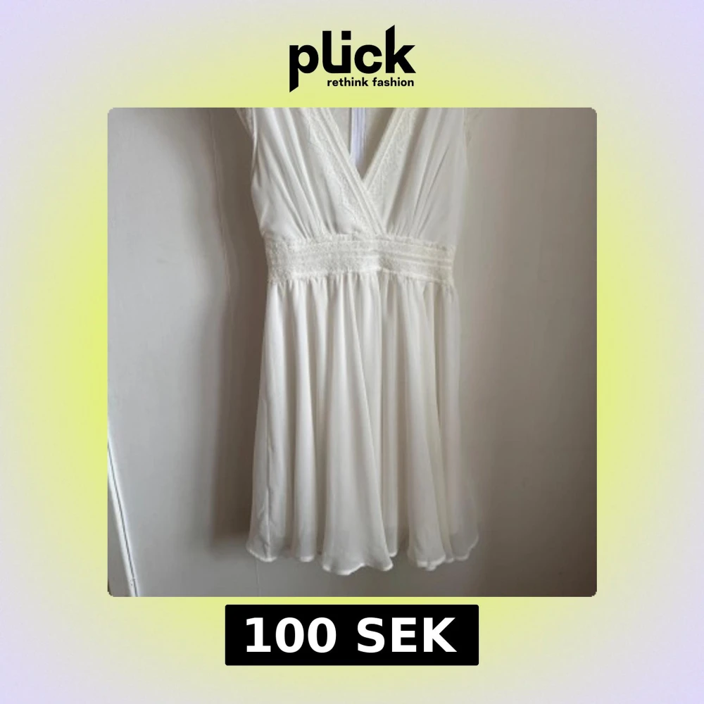 Säljer en vacker vit klänning från TFNC London med spetsdetaljer och omlott-design. Klänningen har en v-ringad hals och är ärmlös, perfekt för sommarens festligheter. Den har en luftig kjol som ger en fin siluett.