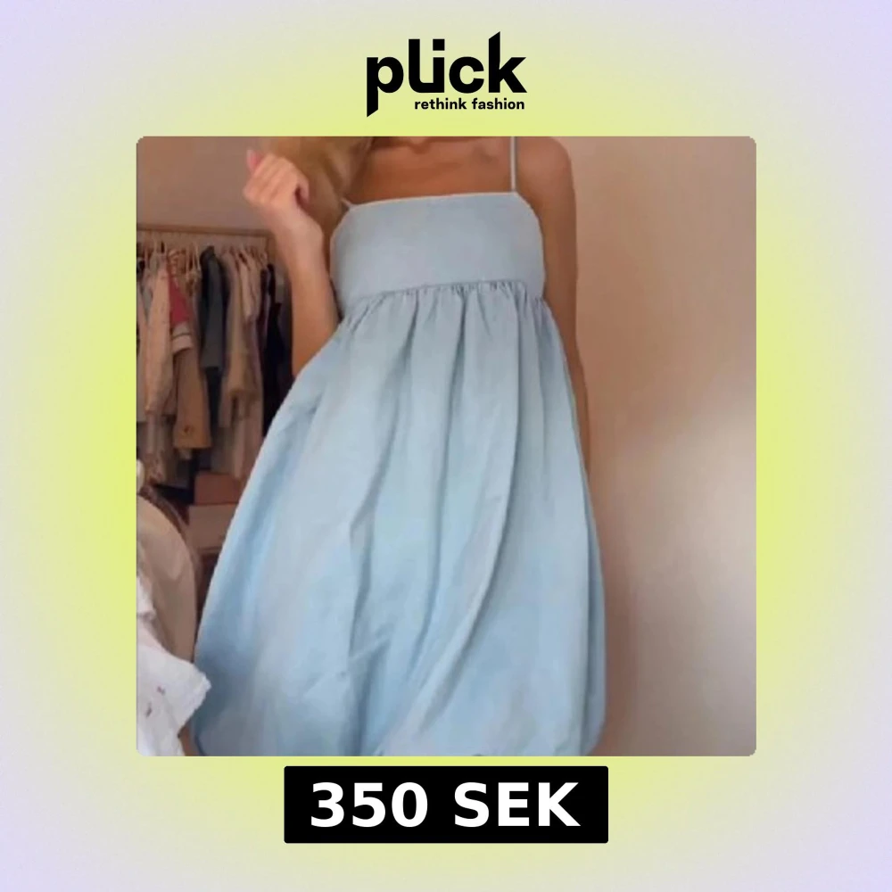 Supersöt ljusblå klänning med luftig passform och tunna axelband. Modellen är kort och har en rak överdel med rynkad kjol som ger en skön och avslappnad vibe. Perfekt för varma dagar och enkel att styla med sneakers eller sandaler.