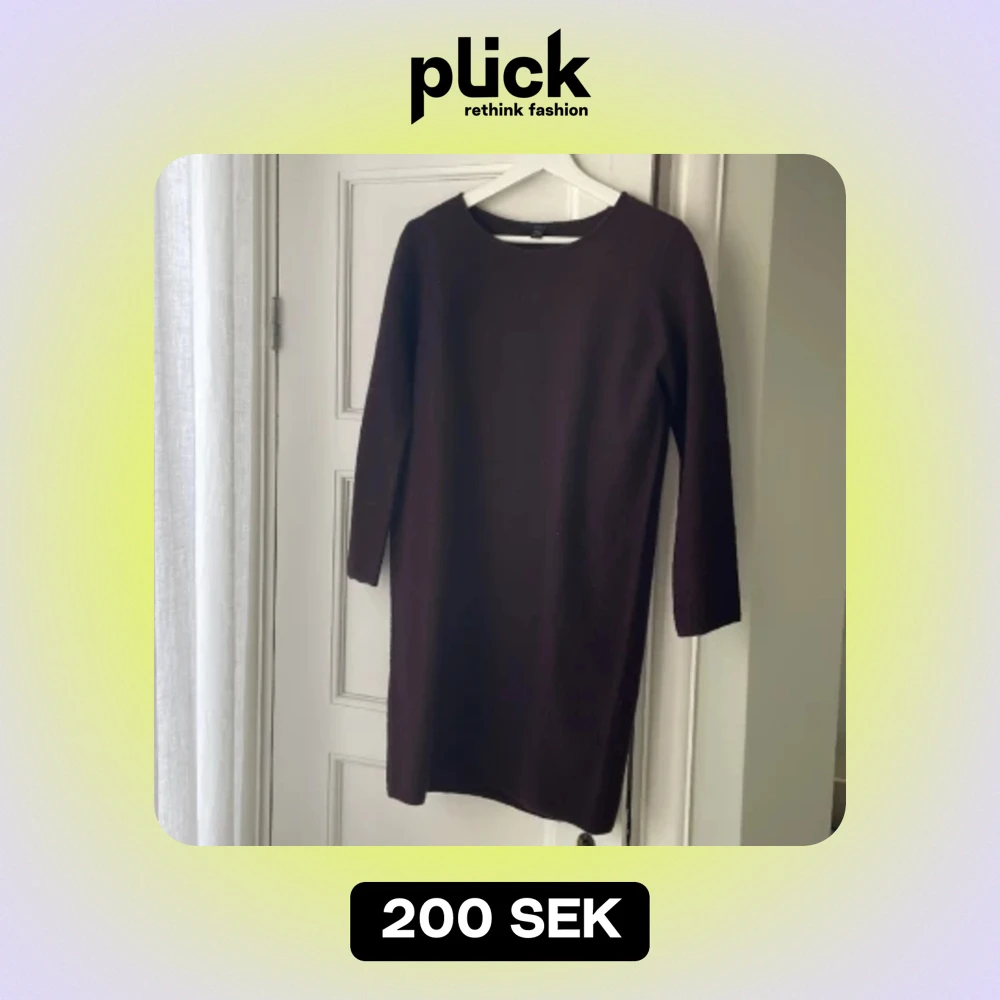 Knälång klänning från COS. 3/4 ärm. 100% ull. Oanvänd. Rak modell. Färgen är burgundy
