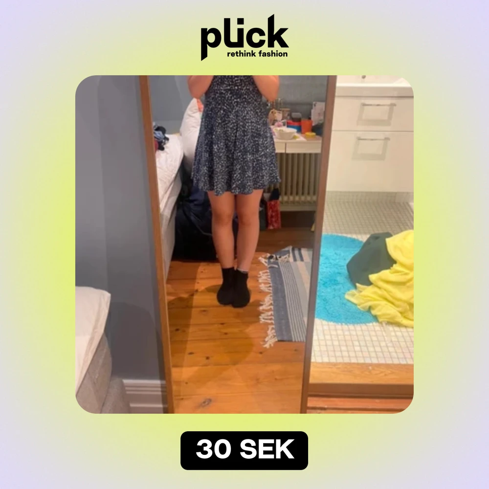 Säljer en superfin blå kortklänning med ett fint mönster. Klänningen är ärmlös och har en tight passning upptill med en utsvängd kjol. Perfekt för sommarfester eller bara en dag på stan. Den är i nyskick och väldigt bekväm att ha på sig. Passar perfekt till både sneakers och klackar!