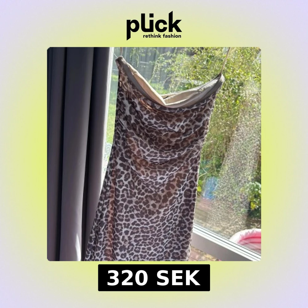 Snygg långklänning med leopardmönster och tunna axelband. Klänningen har en draperad urringning och är i ett lätt, följsamt material som ger en cool och trendig look. Perfekt för dig som vill sticka ut med ett djurmönster. Aldrig använd