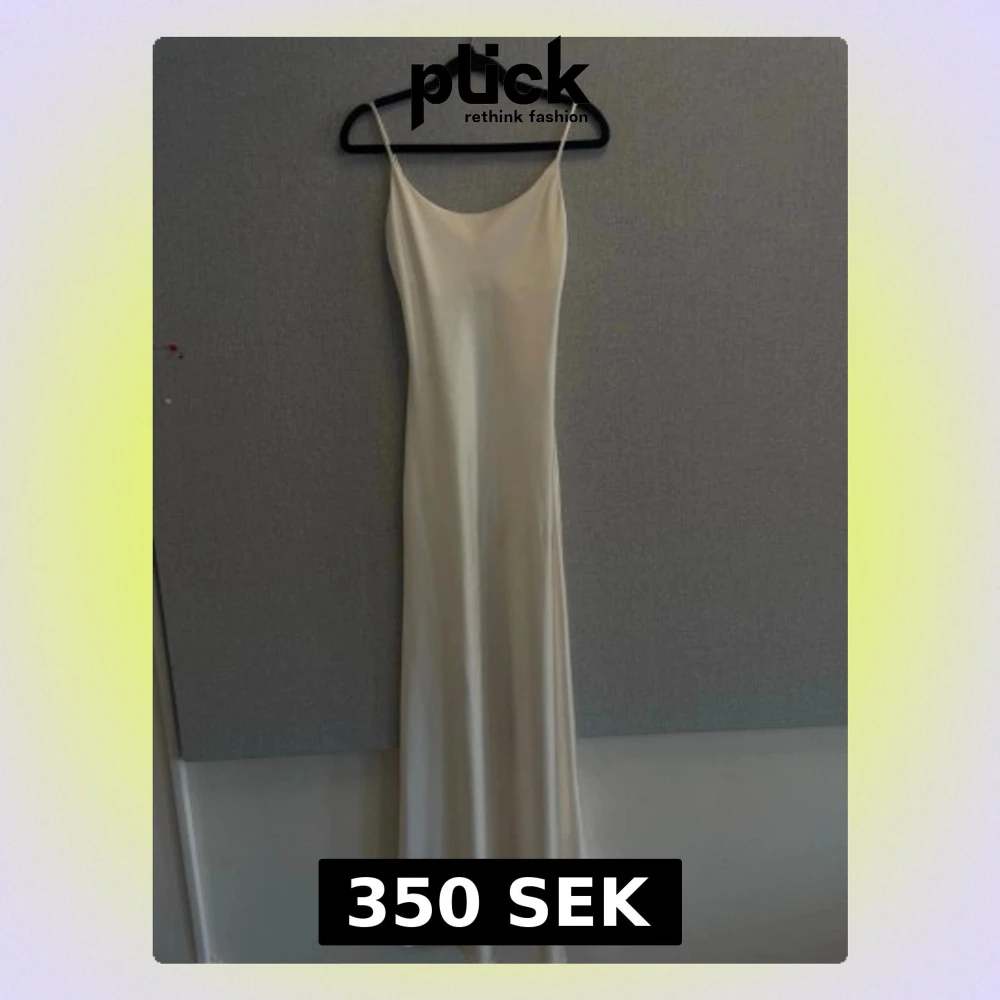 Elegant långklänning i vit satin med smala axelband och enkel, stilren siluett. Klänningen har en mjukt rundad urringning och faller snyggt längs kroppen. Perfekt för dig som gillar minimalistisk och tidlös stil.
