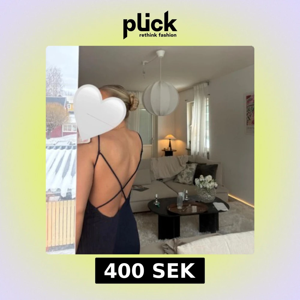 Elegant mörkblå klänning med smala axelband och en vacker öppen ryggdesign. Klänningen har en volangdetalj framtill som ger en extra touch av stil. Perfekt för en kväll ute eller en speciell tillställning. Hör av dig via dm om du vill ha fler bilder eller har frågor💖💖