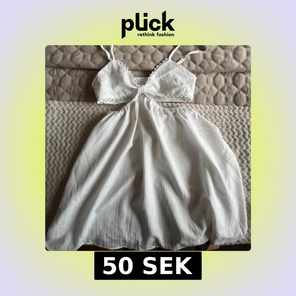 Perfekt Söt vit studentklänning med smala axelband, cut-out under bysten och fina spetsdetaljer längs kanterna. Kjolen är lätt och luftig, perfekt för varma dagar. Klänningen har en feminin och ungdomlig stil.