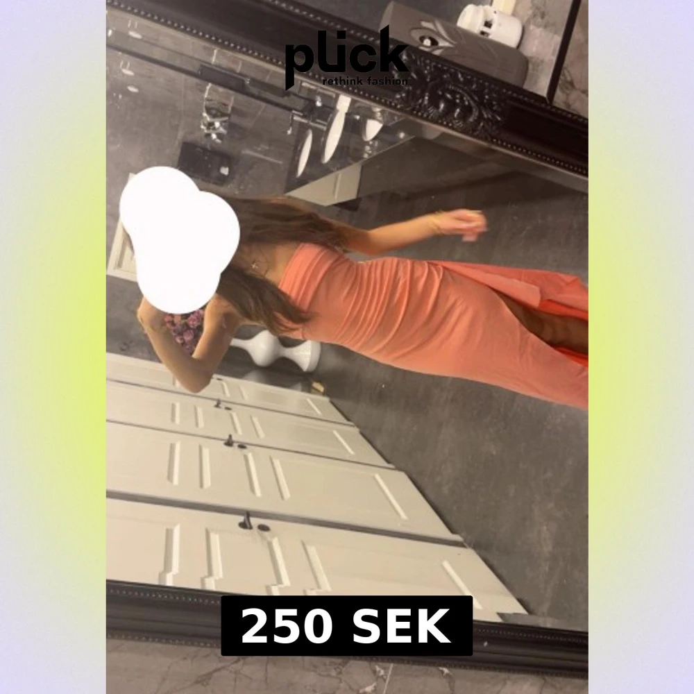 Säljer en snygg axelbandslös lång klänning i korallrosa nyans. Har använts 1 gång. Klänningen har en figurnära passform och en hög slits på ena sidan som ger en extra touch. Perfekt för dig som vill sticka ut med en enkel men elegant look.