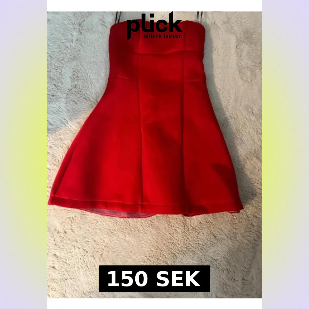 Snygg röd axelbandslös klänning med utsvängd kjol och markerade sömmar. Perfekt till jul🎄🎅🏻