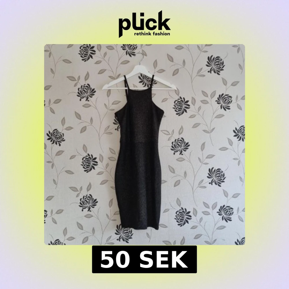 Snygg svart glittrig klänning från Nelly med smala axelband och en figurnära passform. Perfekt för en kväll ute eller en speciell tillställning. Tillverkad i polyester med en touch av elastan för extra komfort.