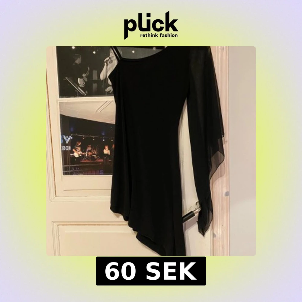 Elegant svart oneshoulder klänning med asymmetrisk design och transparenta detaljer. Perfekt för en stilfull kväll.