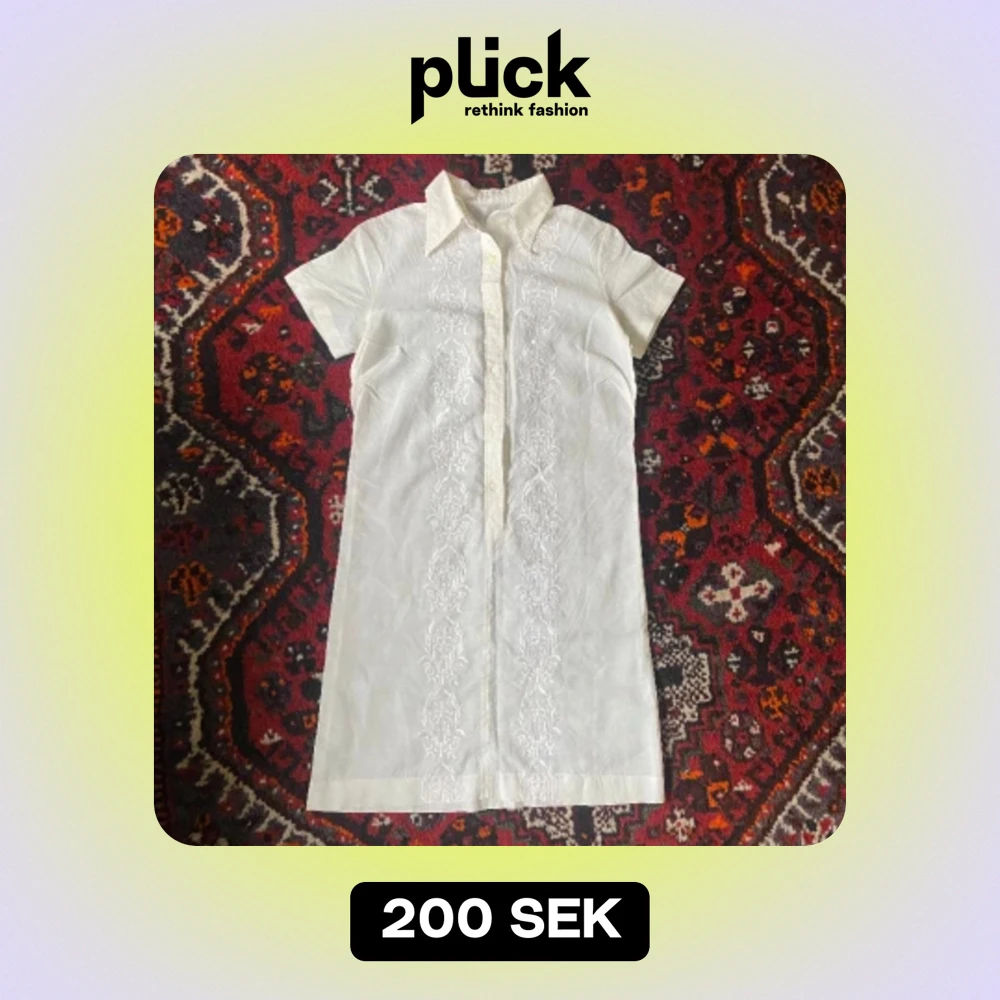 jättefin vintage kort vit skjortklänning i country/cowboy-stil (?) med broderat mönster! fåtal små fläckar (se bild) men syns knappt, annars i bra skick!
