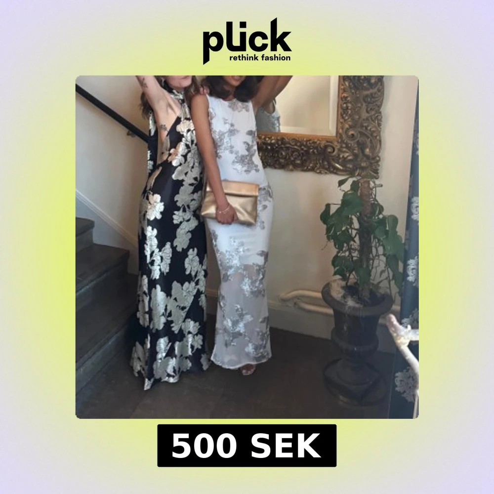 Blå långklänning med silverfärgade blommor och rund halsringning. Klänningen har en elegant, figurnära passform och är ärmlös. Perfekt för bal!!!!🩵 köpt för 1000kr, använd endast 1 gång