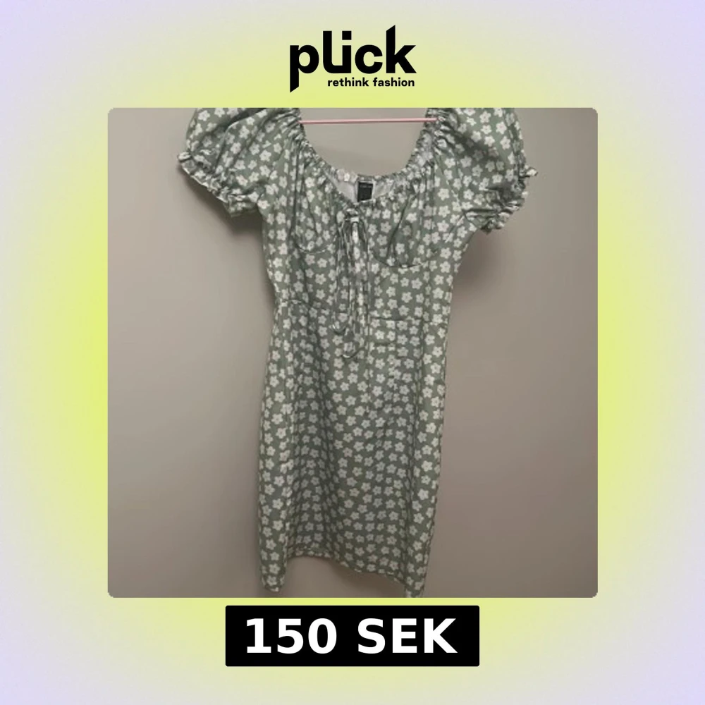 Supersöt grön klänning med vita blommor från SHEIN. Puffiga korta ärmar, knytning fram och dragkedja i ryggen. Klänningen har en rundad hals och är tillverkad i lätt polyester, perfekt för sommarens alla tillfällen.