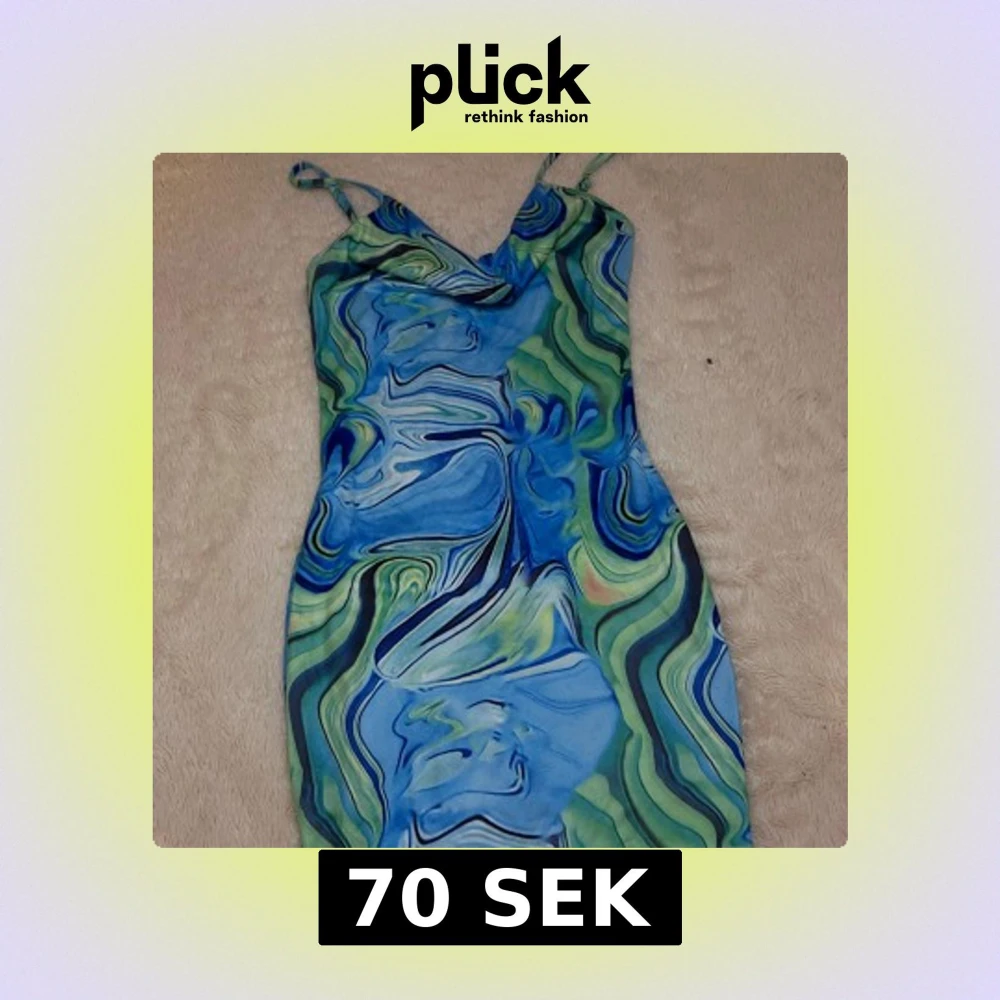 Säljer en tight men stretchande snygg klänning med blått och grönt marmormönster. Klänningen har smala axelband och en lätt draperad v-ringning som man kan justera på de som passar en. Perfekt för dig som ska ut till en fest eller klubb och vill se extra men inte för extra ut. Storleken är xs men passar s också, pris kan diskuteras och om ni har andra frågor eller undrar om fler bilder💙