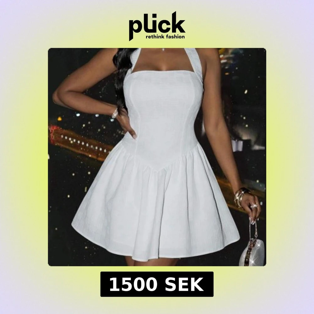 Supersöt vit kortklänning i Positano-stil med halterneck och markerad midja. Klänningen har en voluminös kjol och fyrkantig urringning, perfekt för sommarens alla tillfällen. Materialet är lätt och ger en fräsch känsla. Snygg och trendig siluett som verkligen sticker ut.