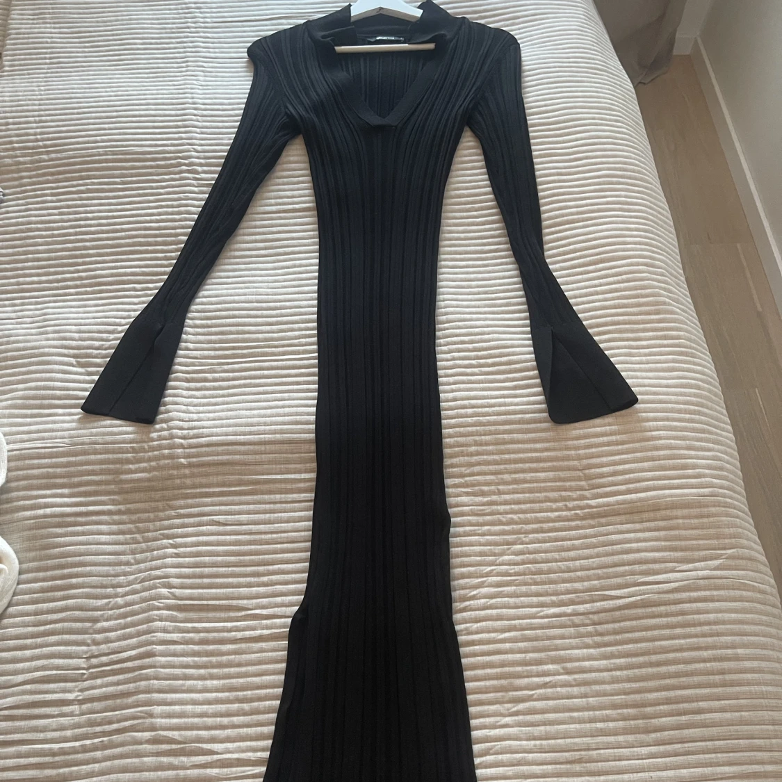 Lång klänning svart med slits på armarna, inte använd, stretchigt material