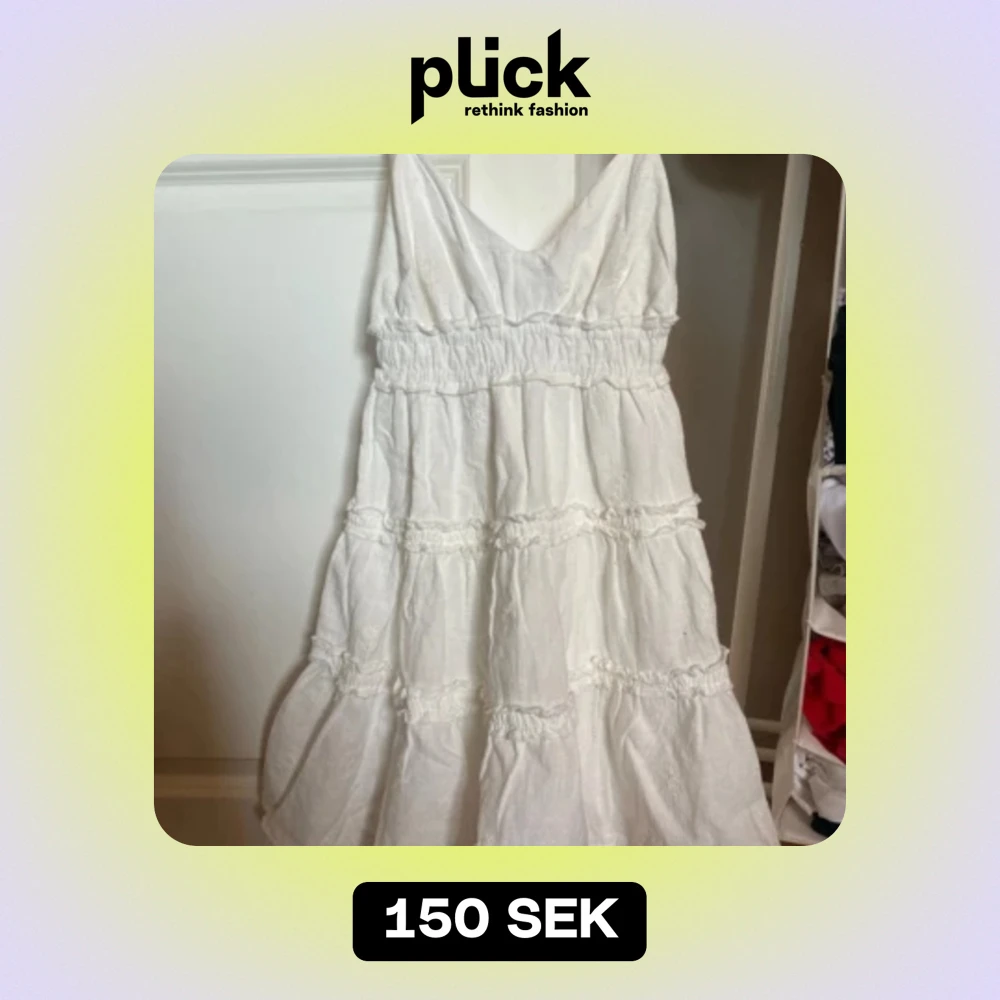 Säljer en superfin vit sommarklänning med volanger. Den är ärmlös och har en v-ringad design som ger en luftig och bekväm känsla. Perfekt för sommarens alla fester och tillfällen! 💕