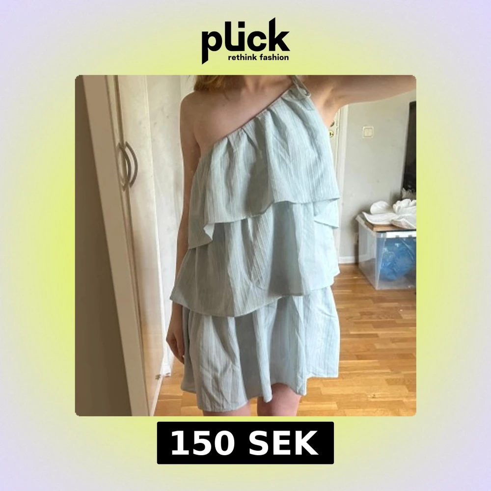 Enaxlad kort volangklänning i ljusblå. Justerbar och knytes vid axeln 💕 jag är 167cm o bär vanligtvis s