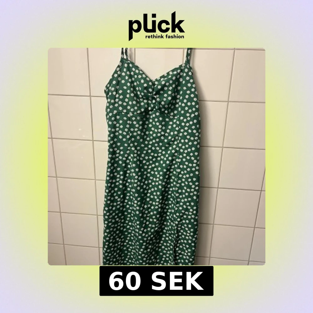 Snygg grön långklänning med vita blommor och smala axelband. Klänningen har en feminin v-ringning och figurnära passform upptill som ger en fräsch och somrig vibe. Perfekt för dig som gillar blommigt och vill sticka ut med färg.