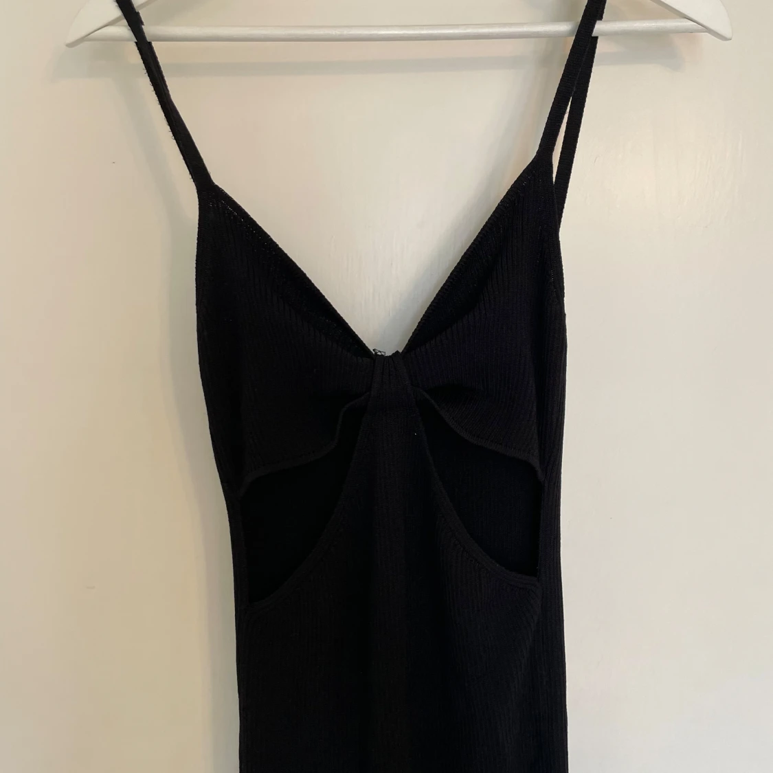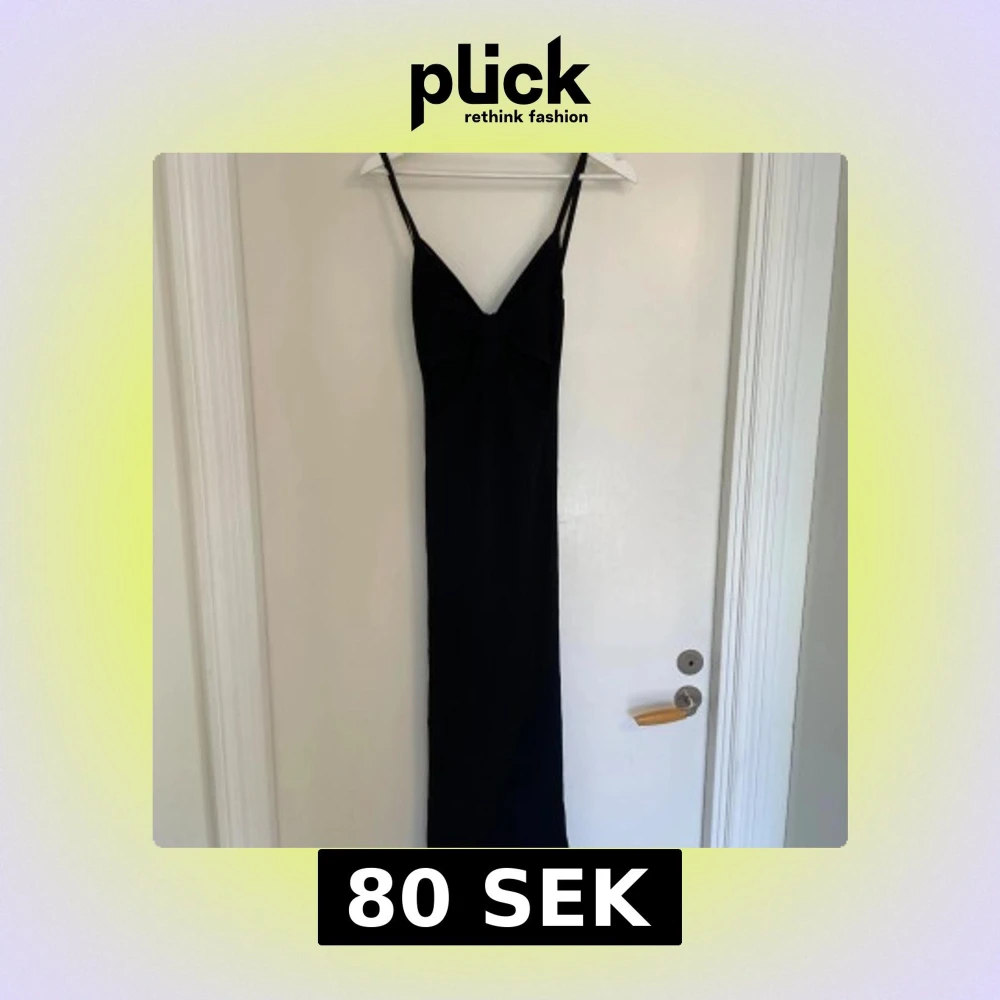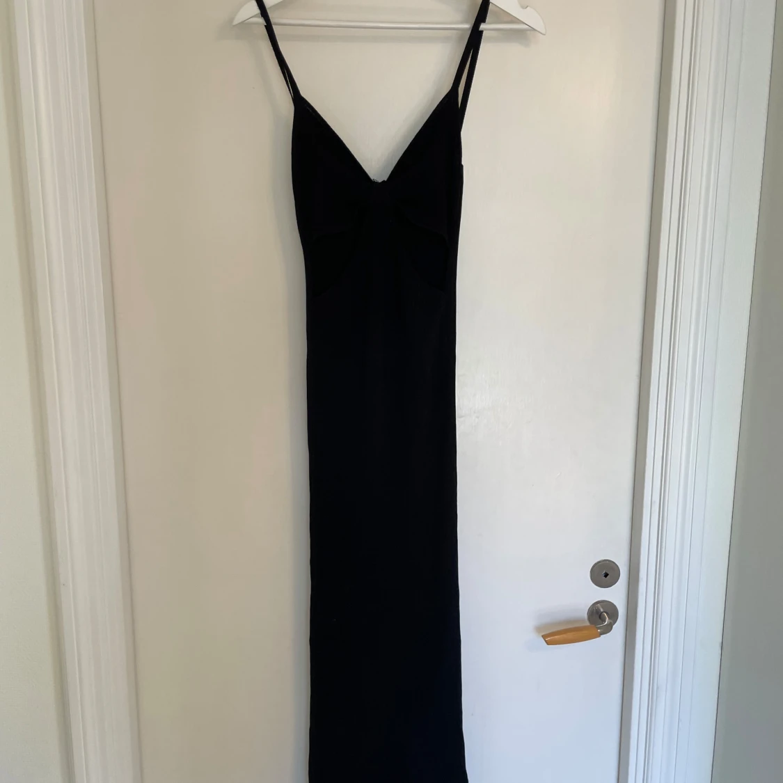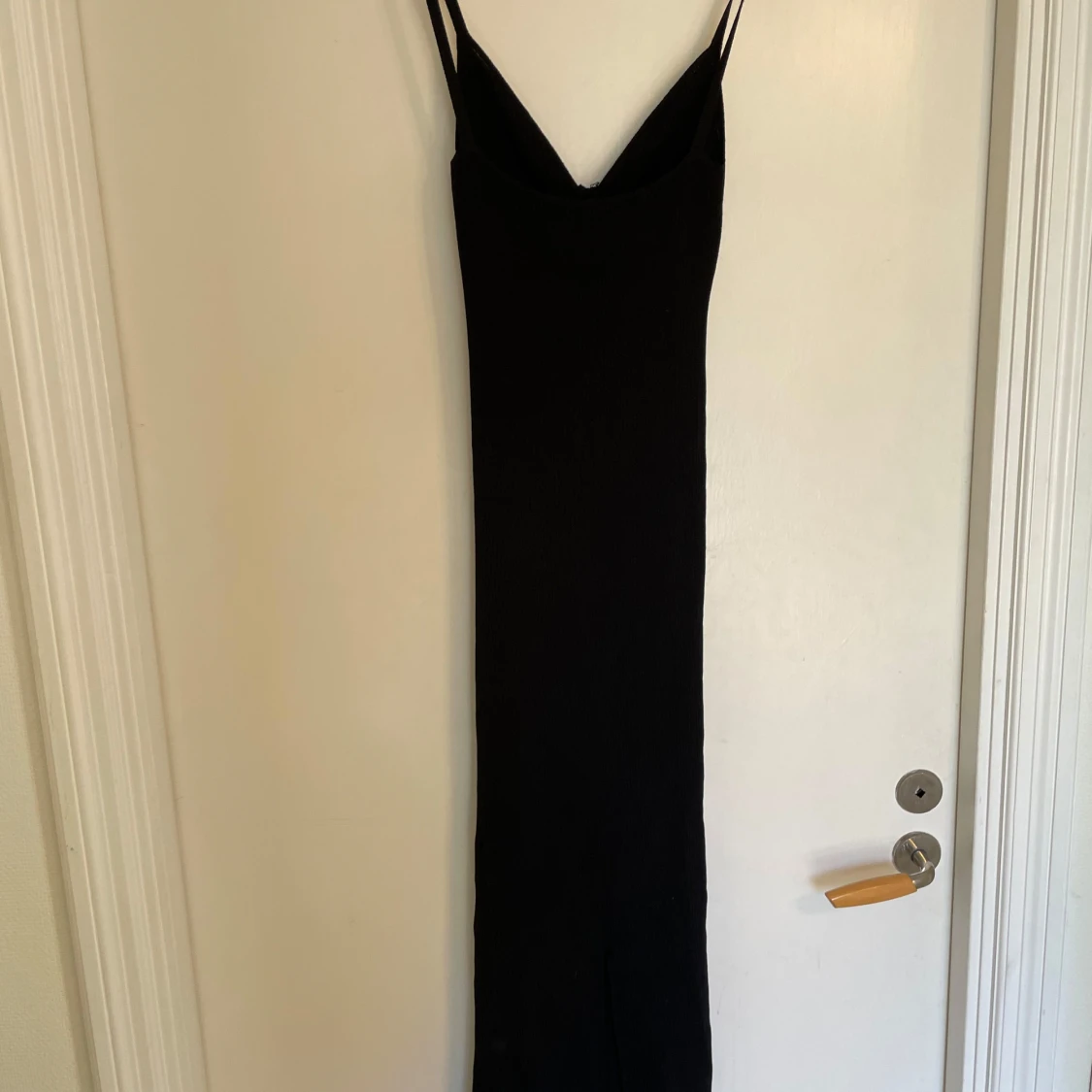 Säljer en svart långklänning med smala axelband och snygg rosettdetalj framtill. Klänningen har en figurnära passform och är ärmlös, perfekt för dig som gillar stilrena och trendiga plagg. Materialet känns mjukt och stretchigt.