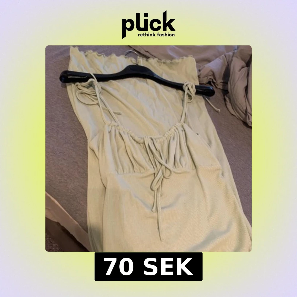 Supersöt ljusgrön långklänning med ribbad struktur och smala axelband som knyts. Klänningen har en snygg snörning framtill och är perfekt för varma dagar. Den är ärmlös och har en avslappnad, somrig vibe.