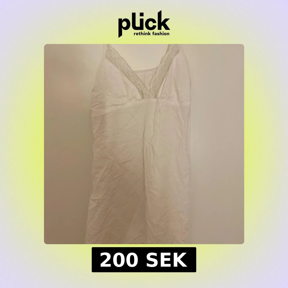 Söt vitt kort nattlinne med smala axelband och v-ringning dekorerad med spets.