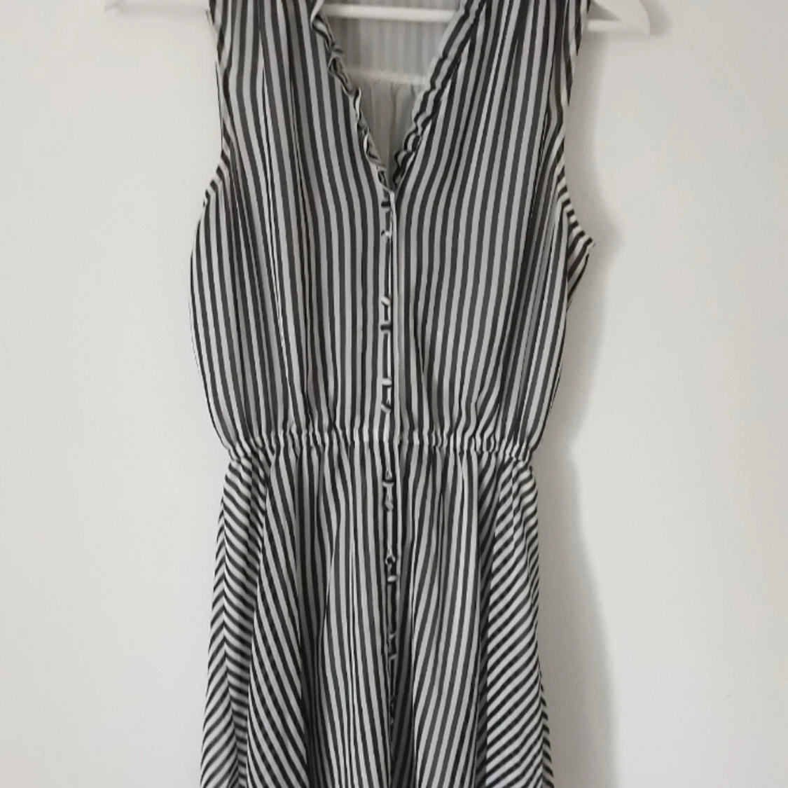 Vit prickig kort klänning - Söt vit kort klänning med svarta prickar och tunna axelband. Klänningen har volangdetalj upptill och är perfekt för varma dagar. Tillverkad i ett lätt och luftigt material som känns skönt mot huden.