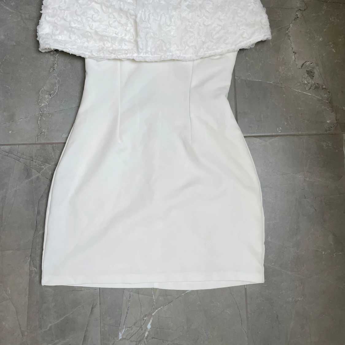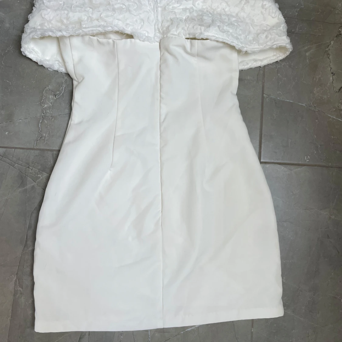 Super fin bandou klänning. 3d blommönster på klänningens övre del. Använd 1 gång under student. Nypris 800kr