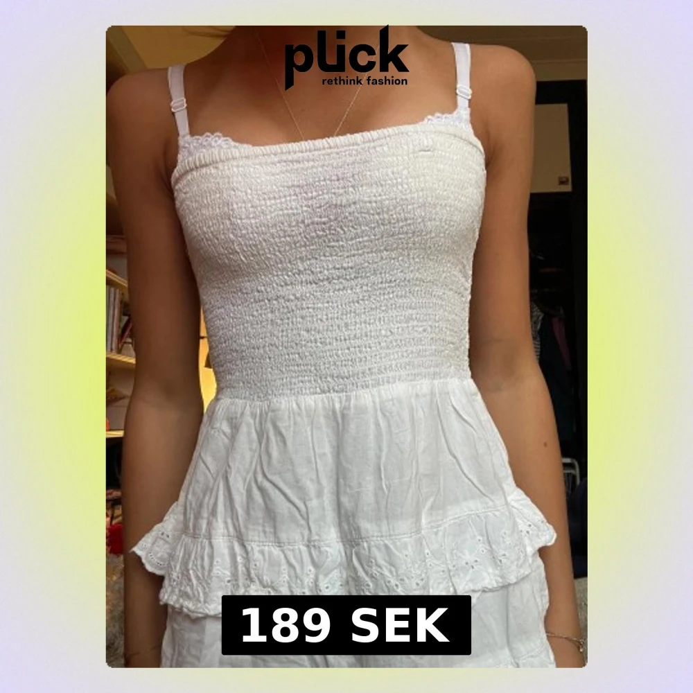 En jättesöt klänning som man även kan ha som kjol! Den är jättefin och skön men kommer tyvärr inte till användning eftersom jag inte brukar ha klänning eller kjol😢❤️jag vet inte var den är ifrån och lappen är borta. Det finns 3 av 4 grejer som man kan fästa avtagbara axelband på men jag hittar inte banden. En av grejerna man fäster i är borta och har gjort ett litet hål som är nästan helt osynligt när man har på sig den🩷buda gärna men köpt dyrt för ungefär 500kr