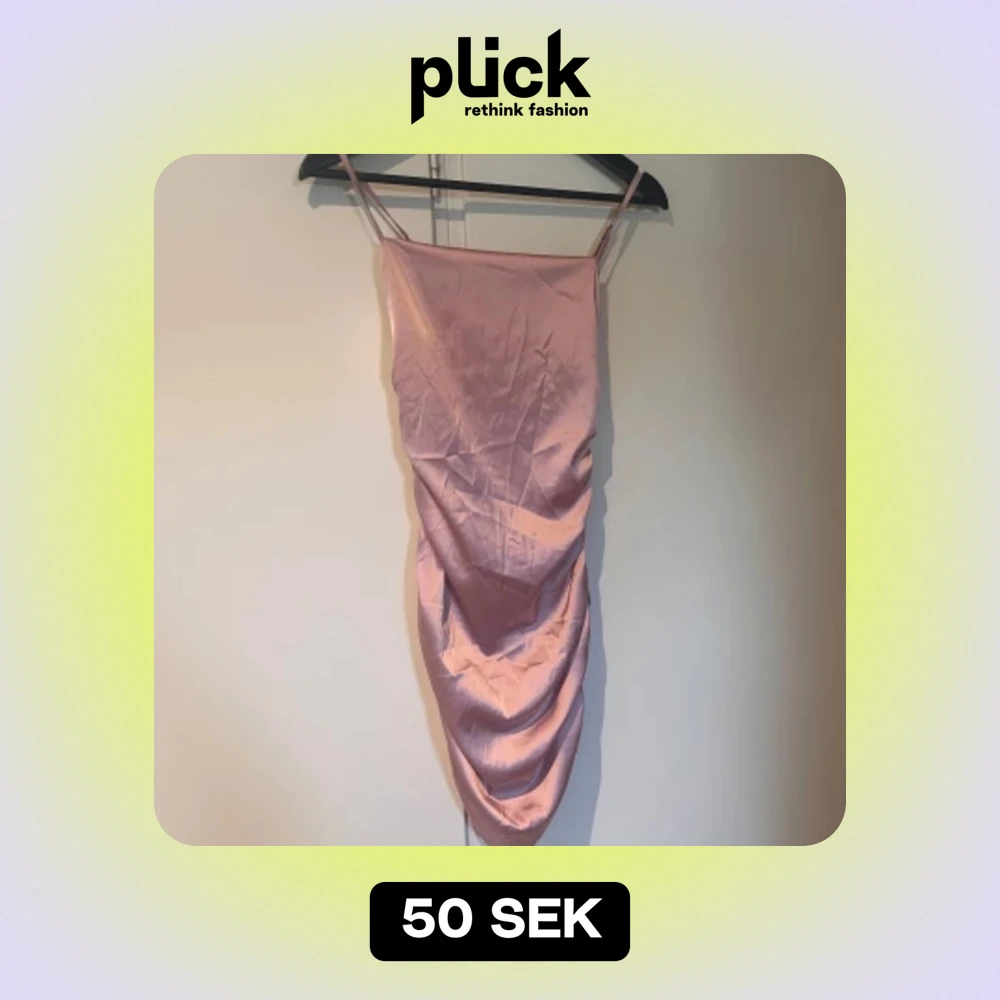Säljer en superfin rosa klänning i satinmaterial med rynkdetaljer på baksidan.