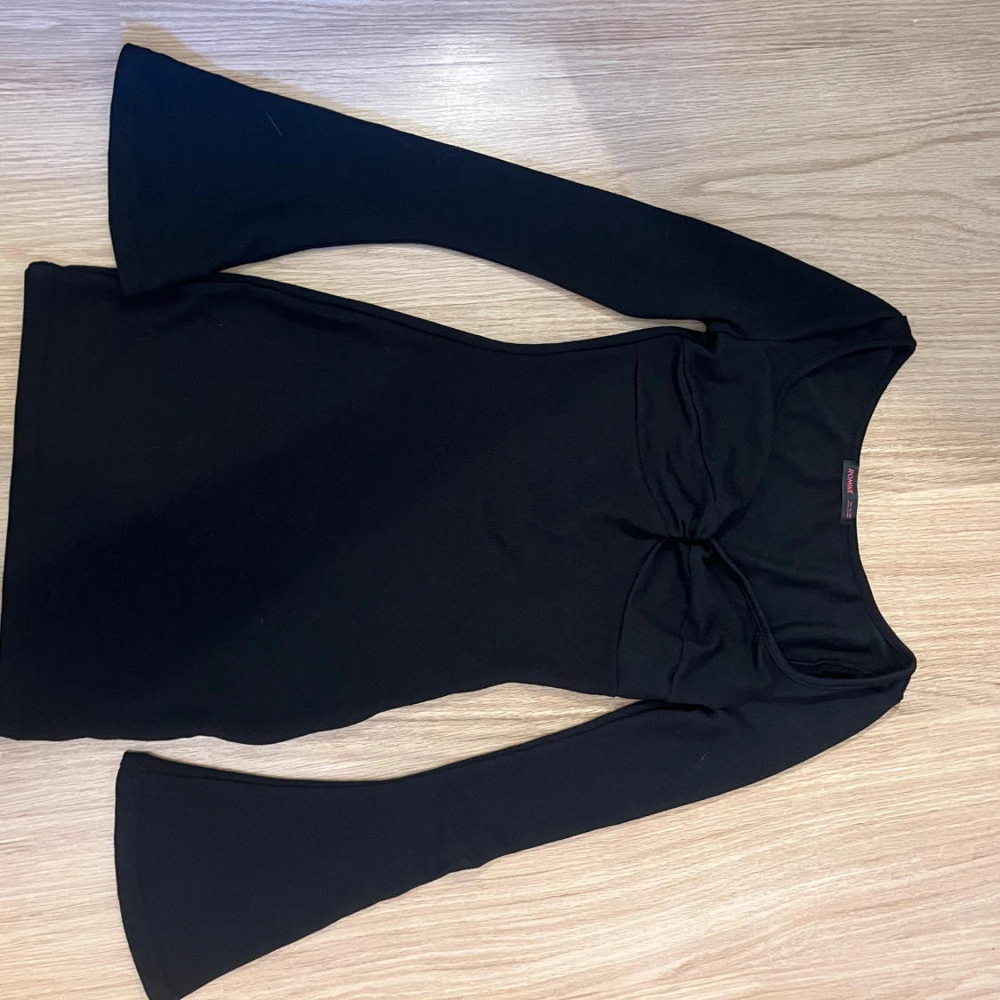 Svart klänning från shein med lång ärm och tight passform. Modellen är kort och har en twistad detalj vid bysten som ger extra stilpoäng. Perfekt för dig som gillar minimalistisk look med en liten edge. Aldrig använt.