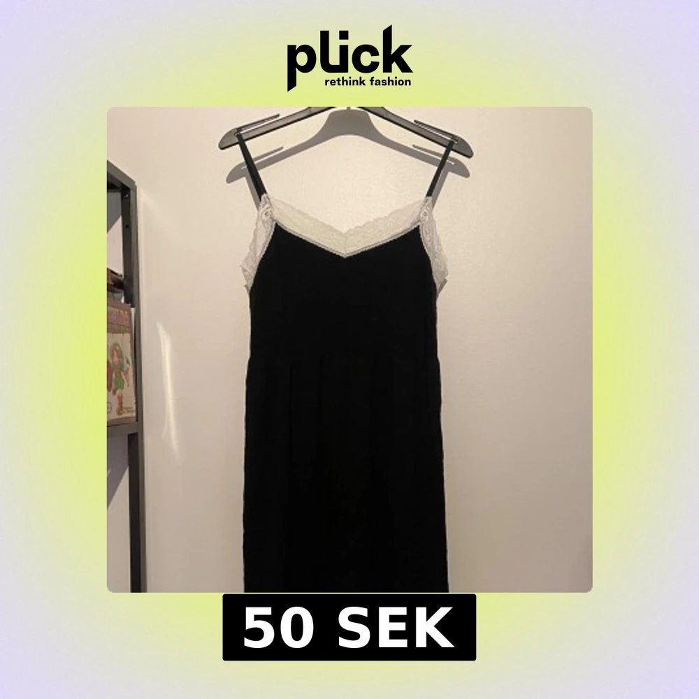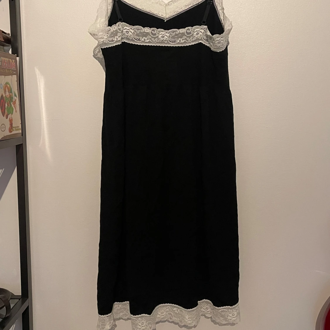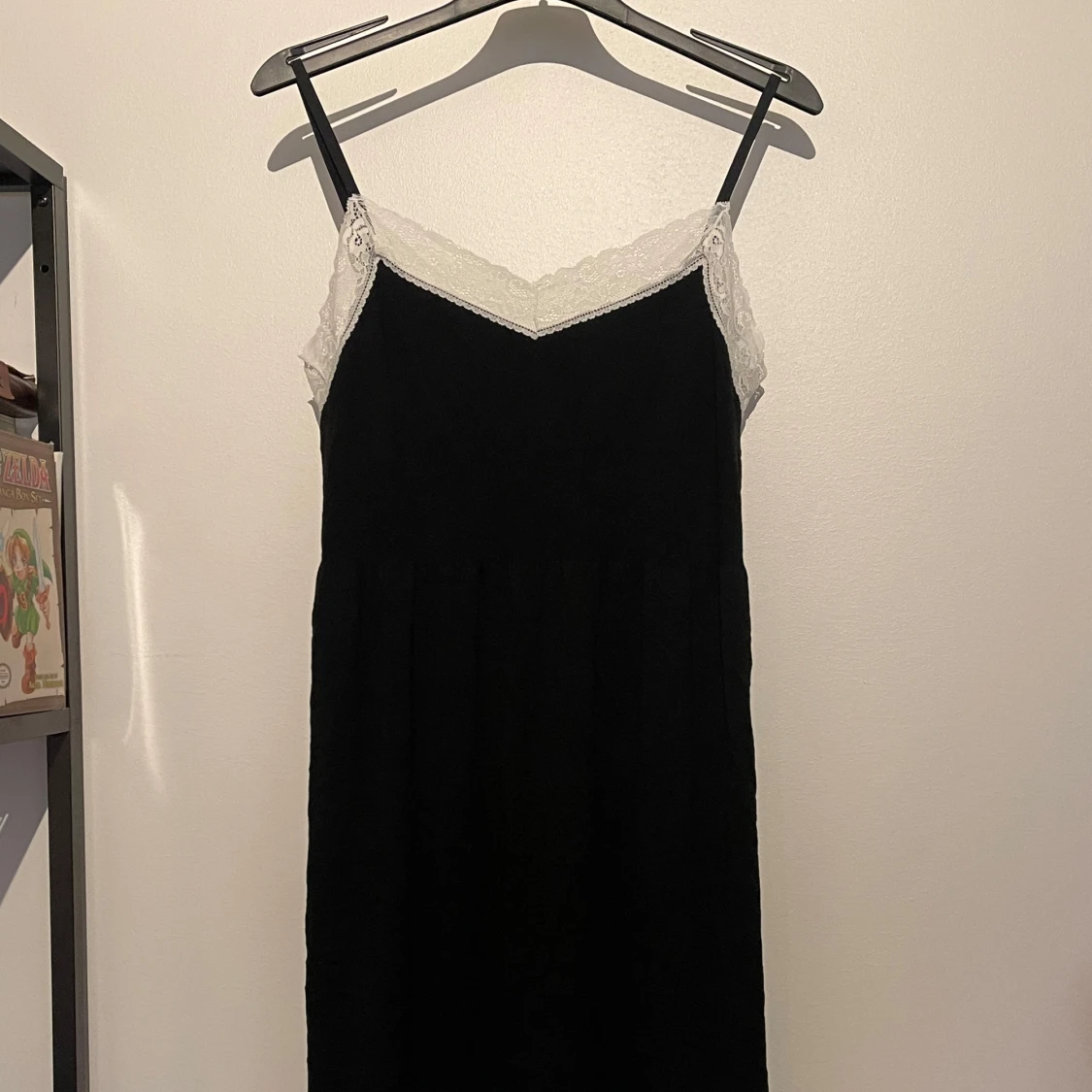 svart pyjamas klänning med vita spetsdetaljer. tunn och mjuk, perfekt för varma sommarnätter. aldrig använd och kommer från ett djur och rökfritt hem 🖤