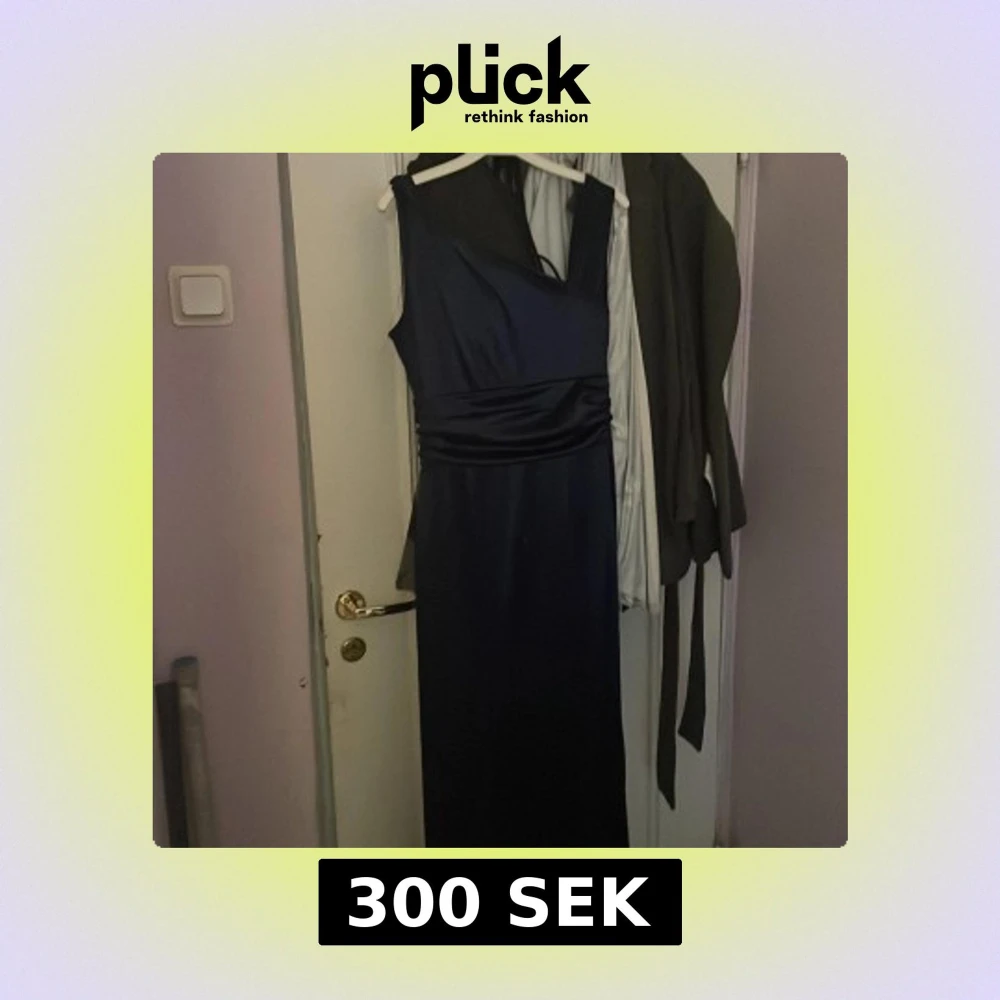 Säljer en elegant marinblå långklänning/balklänning med oneshoulder-design och bred axelrem. Klänningen har markerad midja med draperad detalj och är tillverkad i ett glansigt, mjukt material som ger en lyxig känsla. Perfekt för bal eller festliga tillfällen. Storlek M, 350kr kan pruta. Helst bo i Göteborg