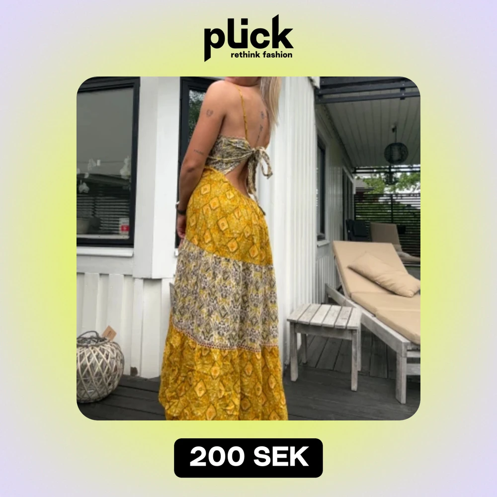 Använt ett fåtal gånger men inget tecken på slit överhuvudtaget!! Öppen rygg som man själv knyter hur löst, eller tajt man vill beroende på vilken look man är ute efter. Öppen detalj längst ner mellan de två färgerna (se bild) Så skön och flowig!!