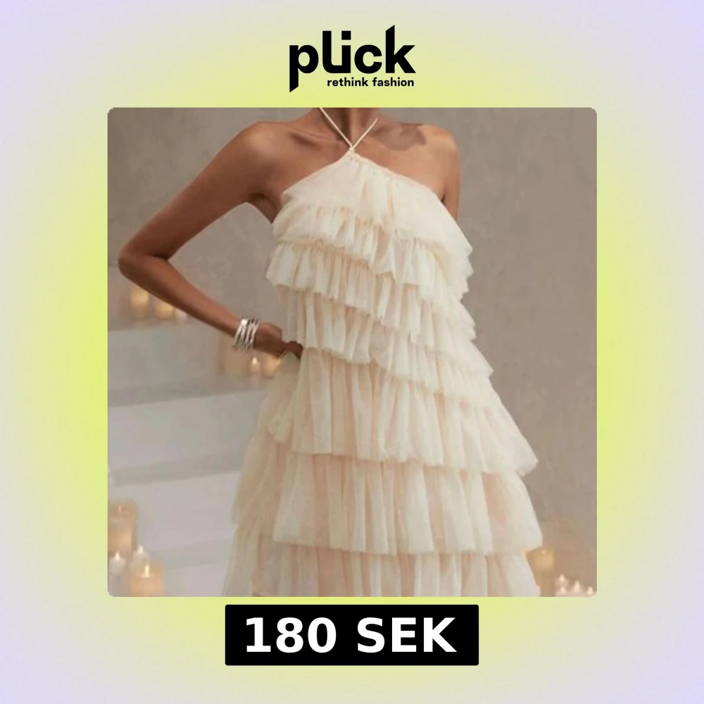 Glittrig Halterneck klänning med knytband. Perfekt för speciella tillfällen! Storlek S(36) aldrig använd
