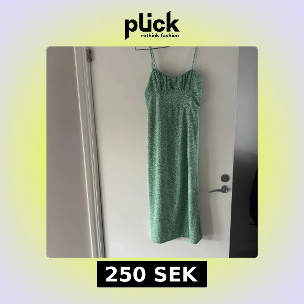 Snygg grön långklänning med smala axelband och slit. Perfekt för sommarens alla tillfällen.