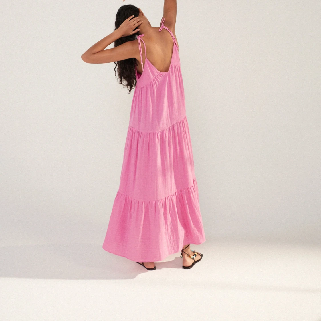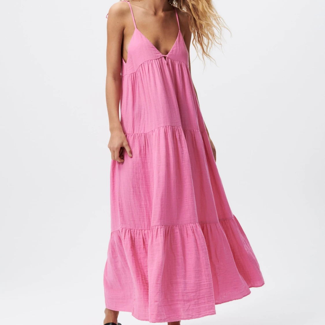 Rosa långklänning från zara. Använd en gång, bra skick men en pytteliten reva i tyget längst ner. Sann till storleken. Köparen står för frakten