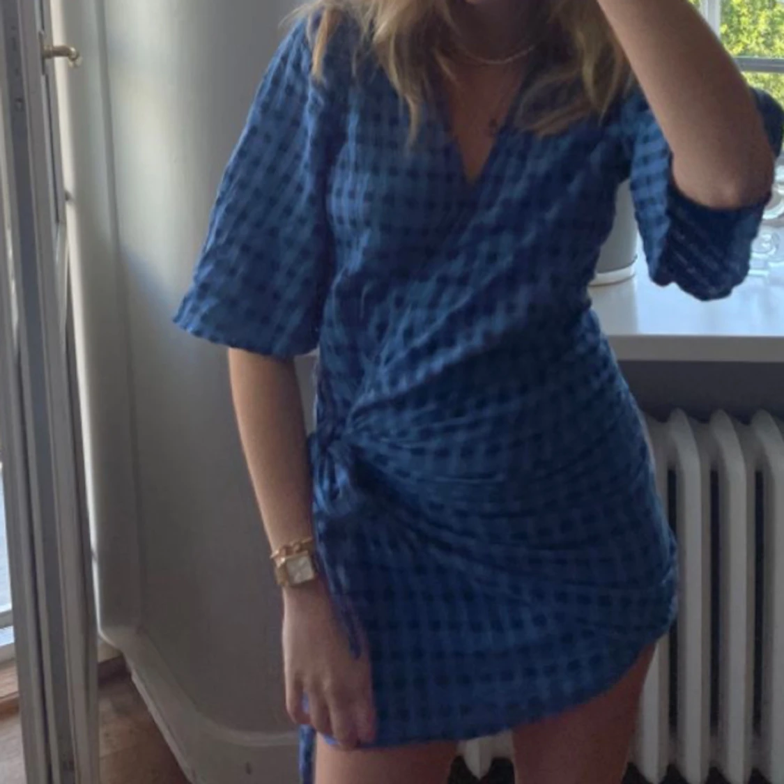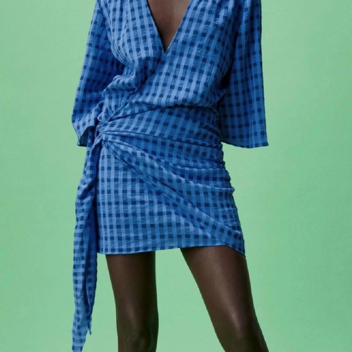 Säljer denna så fina Zara klänning som inte går att få tag i längre. I storlek M men hade kunnat passa både mindre/ större då man kan justera med hjälp av banden vid midjan 💙