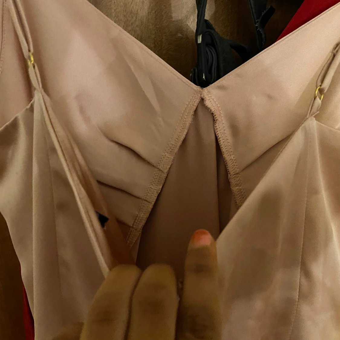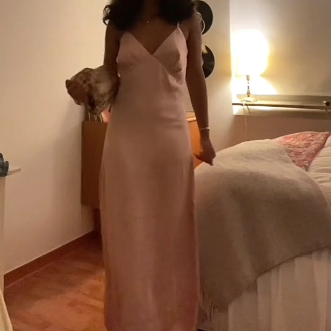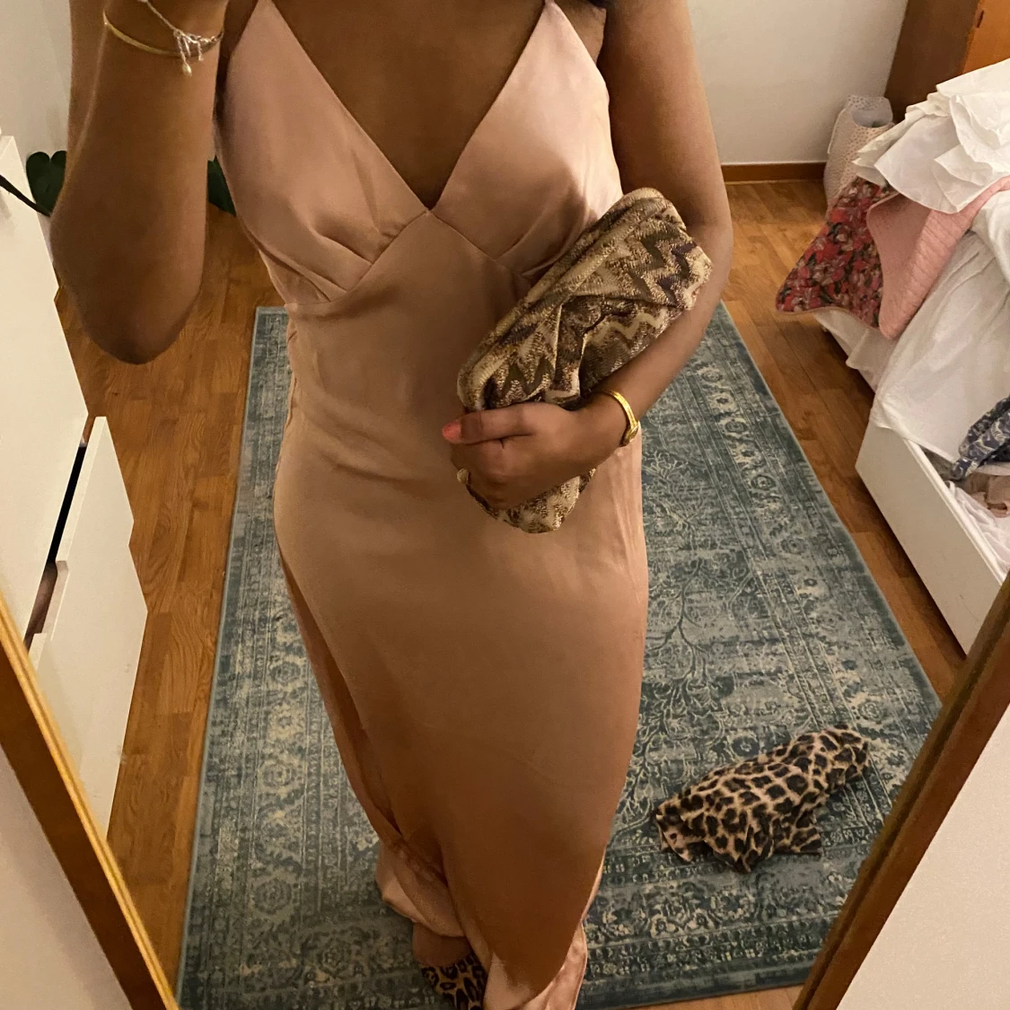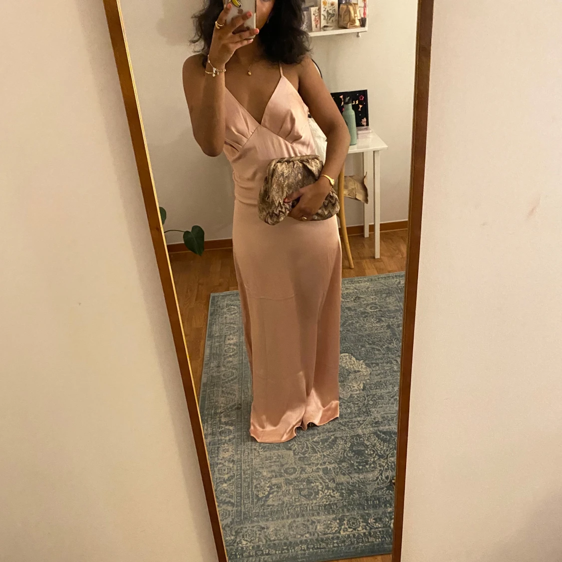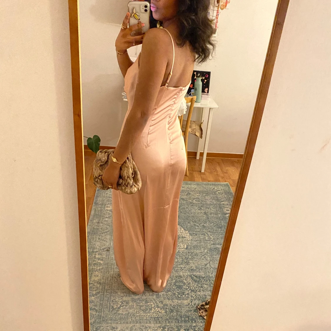 Ljusrosa / aprikosrosa balklänning som är så himla fin!! Jag är 165 och den är liite för lång på mig men går ju att sy upp, passar nog upp till 175 i längd 🧡🧡Passar S också!