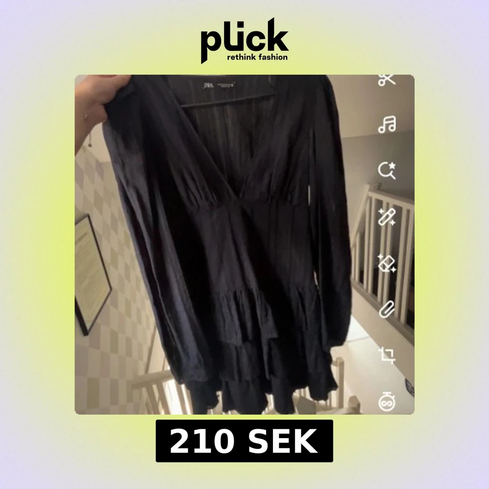 Snygg svart klänning från Zara med v-ringning och långa ärmar. Perfekt för en stilren look. Klänningen har en lätt volangdetalj som ger en fin touch. Tror inte den går att köpa längre