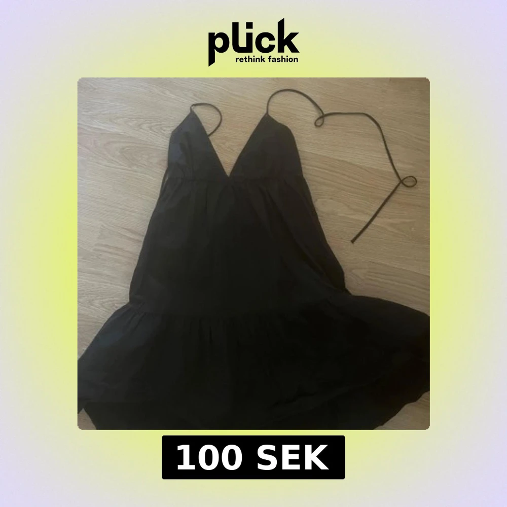 Säljer en svart kort klänning från Zara med smala axelband och v-ringad hals. Klänningen har en luftig passform och volang nertill, perfekt för varma dagar.