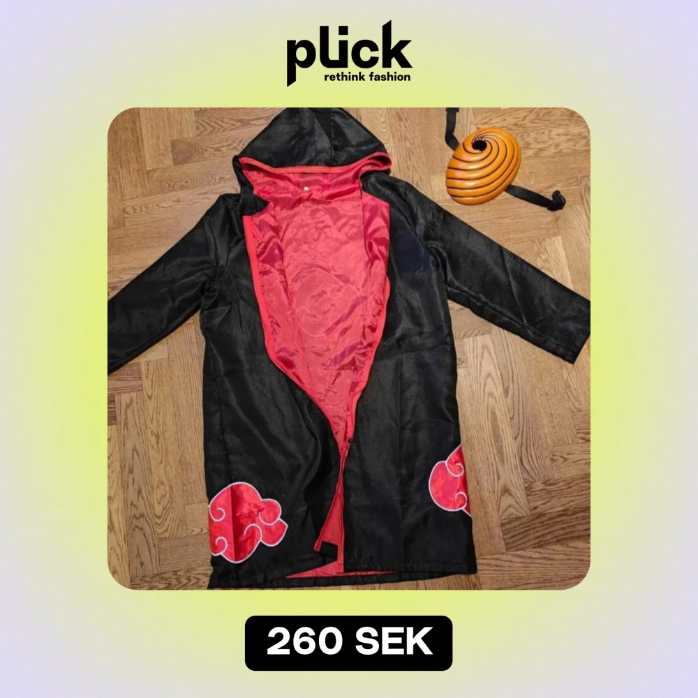 Akatsuki kappa med luva utan mask. Bytt dragkedja till svart. Mjuk. Perfekt till alla tillfällen. Smal. St 36 till 38. Möts i Gbg. 260kr. Svart med röda moln.