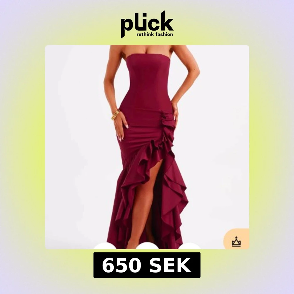 Elegant vinröd axelbandslös klänning med volangdetaljer. I nyskick med prislappen kvar💓