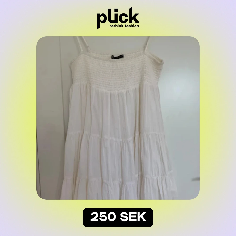 Jag säljer en vit klänning från zara i storlek M. Klänningen är oanvänd med prislappen kvar, och är i ett bra skick. Köpte klänningen för 400kr men säljer för 250kr!