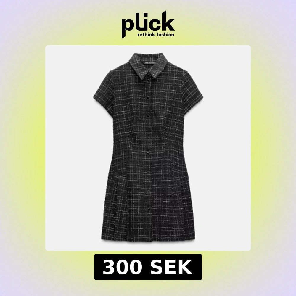 Kort klänning från Zara i svart med vitt rutmönster. Klänningen har korta ärmar, klassisk krage och knappar framtill. Snygg, figurnära passform och tillverkad i ett strukturerat tyg som ger en cool look.