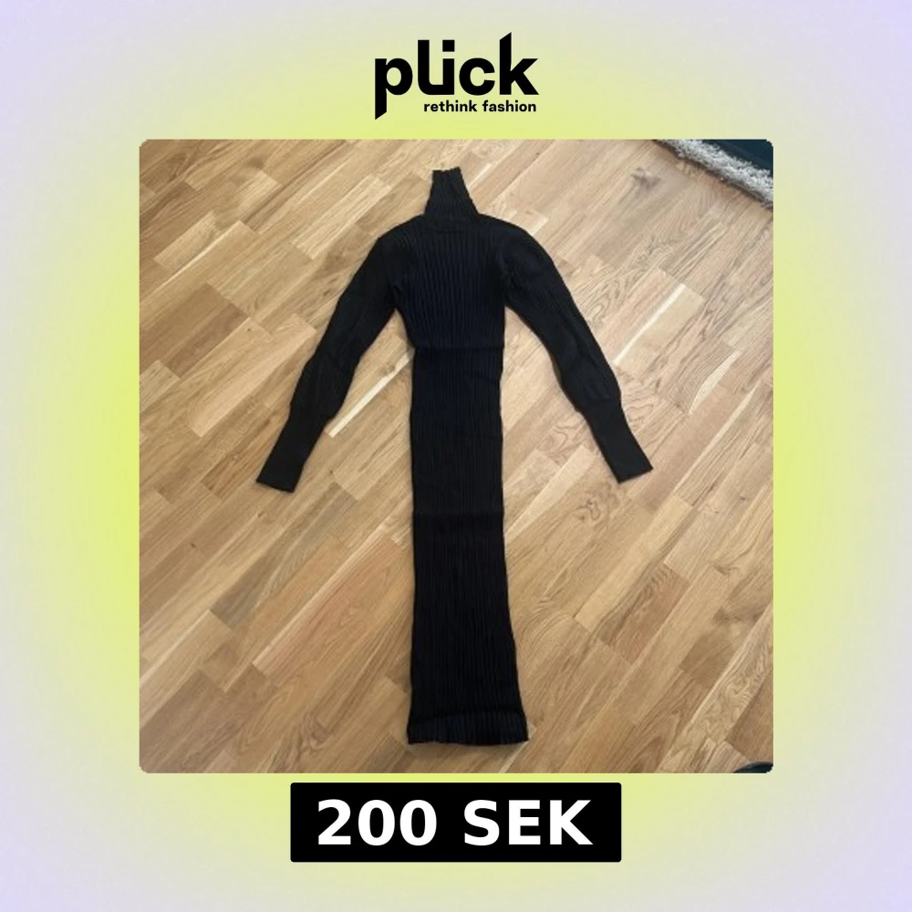 Snygg svart ribbad långklänning med polokrage och långa ärmar. Perfekt för en stilren look. Klänningen har en tight passform som framhäver figuren.