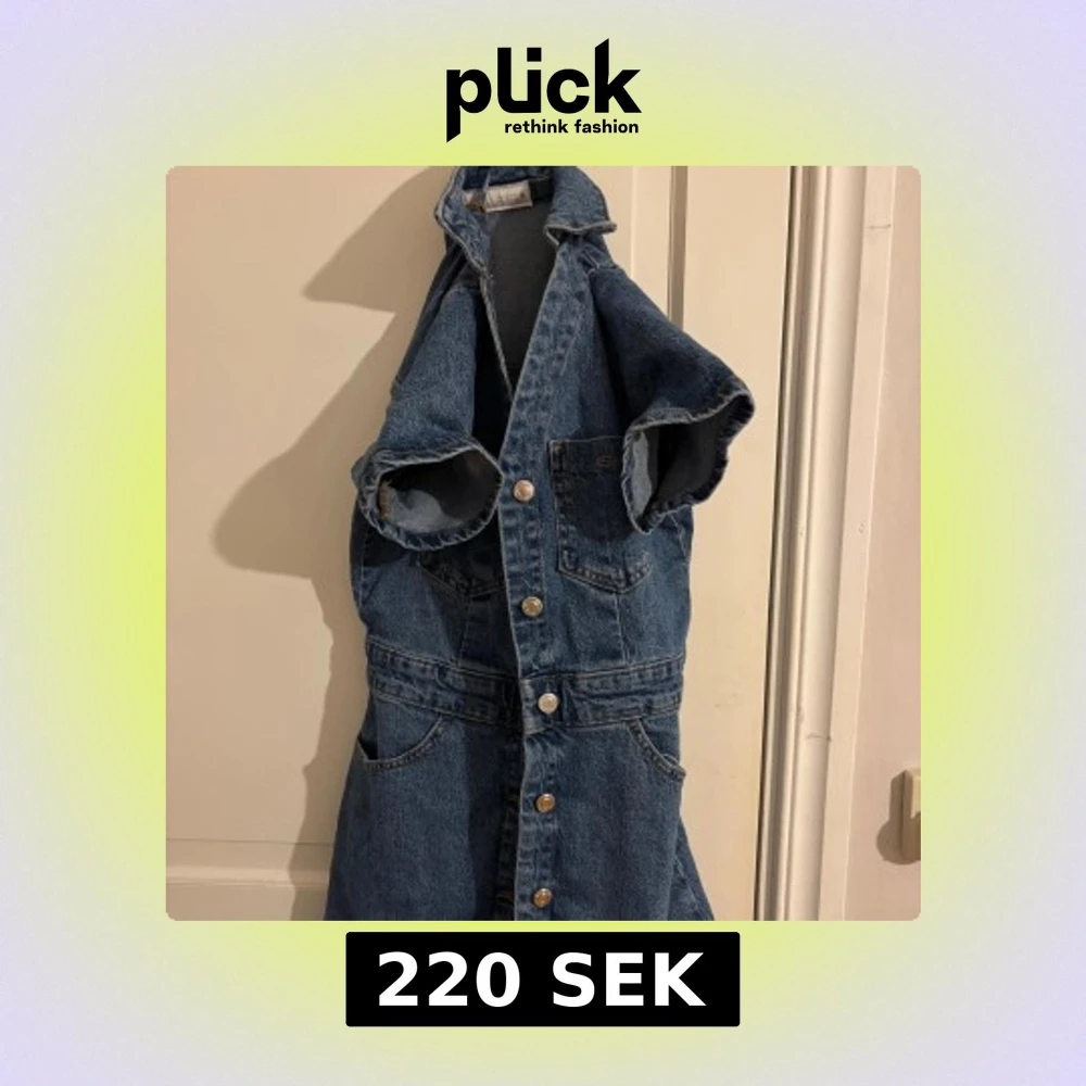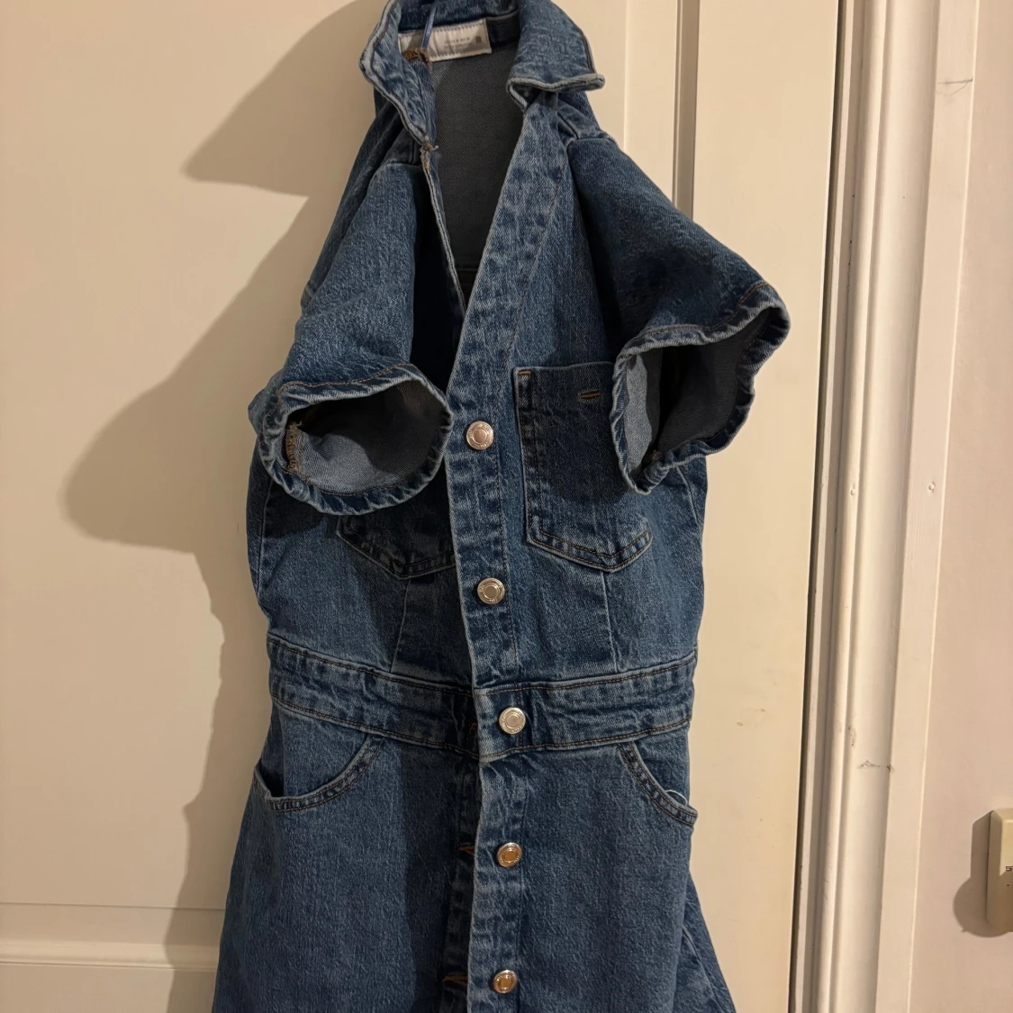 Snygg kort jeansklänning i blå denim med knappar framtill och korta ärmar. Klänningen har krage, bröstfickor och markerad midja. Perfekt för en cool och avslappnad stil.