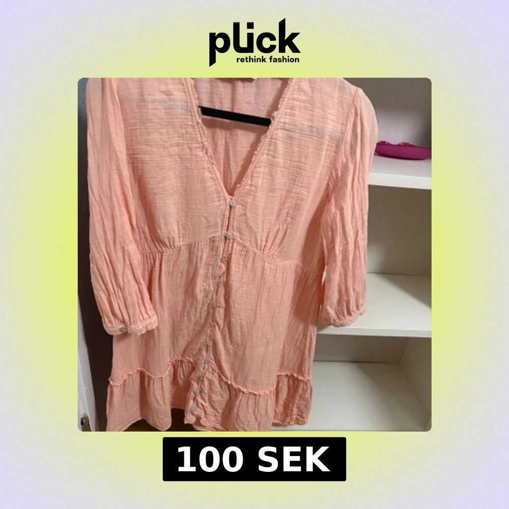 Supersöt ljusrosa klänning från Zara med volangdetaljer och knappar hela vägen framtill. Klänningen har v-ringning, trekvartsärmar och är tillverkad i ett mjukt, tunt bomullstyg. Perfekt för varma dagar när du vill känna dig både chill och söt.